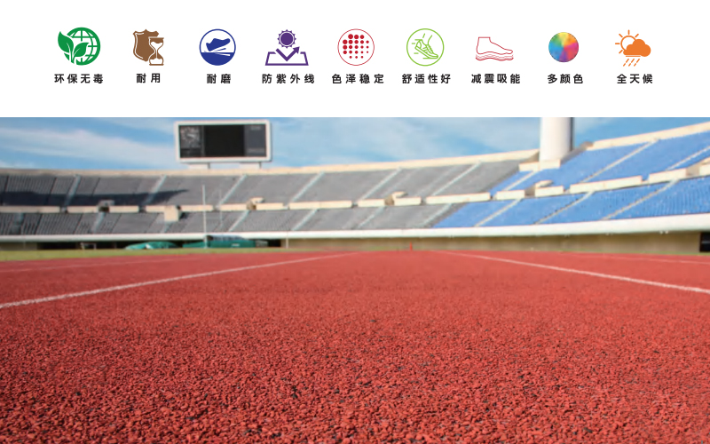 2、本跑道具有色澤鮮艷、美觀舒適、提高興奮度保護(hù)運(yùn)動員的腳踝關(guān)節(jié)、不易疲勞,彈性適宜防滑性能好、耐酸性、耐摩擦、抗紫外線照射耐老化,維護(hù)保養(yǎng)簡便等特點(diǎn)。