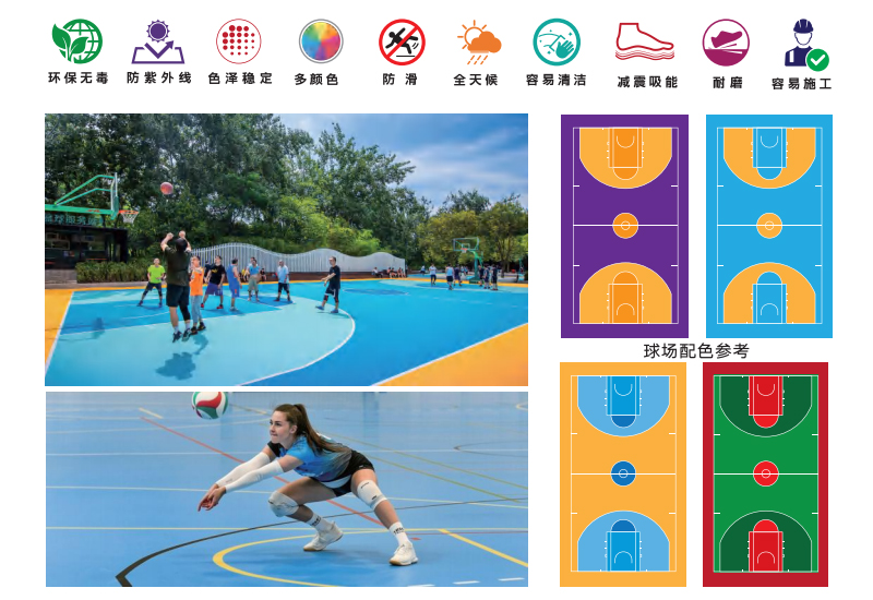 適用于各類球場面層,可在水泥和瀝青路面施工。